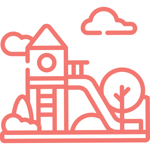 Safe zone with slides and swings for children's entertainment.